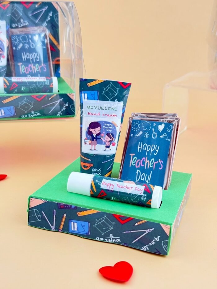يحتوي على ٣ قطع چوكلت و كريم العناية باليد ومرطب شفاه